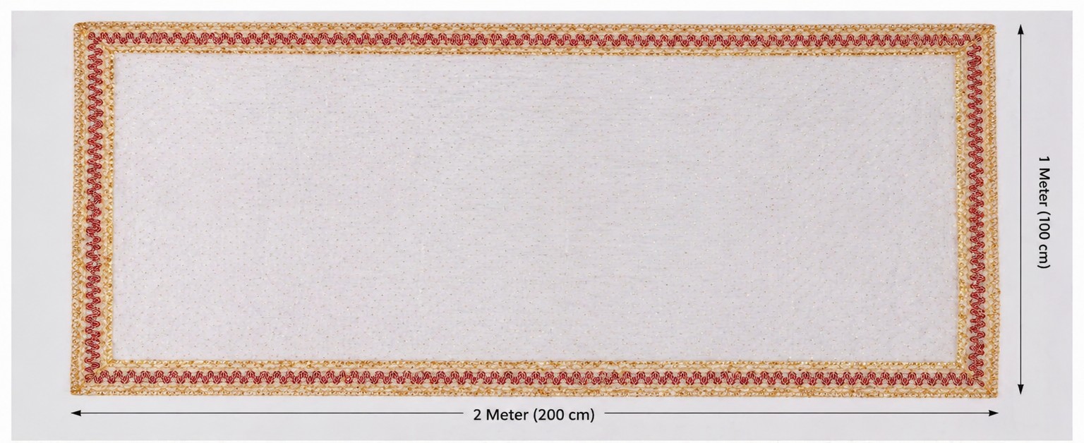 Enhance the purity and elegance of your पूजा space with this beautifully crafted White Chunri for Puja. Designed with a subtle textured fabric and adorned with an intricate red and golden lace border, this chunri adds a divine charm to your mandir setup. Measuring 2 meters in length and 1 meter in width, it provides ample coverage for altars, chowkis, and deity seating arrangements.